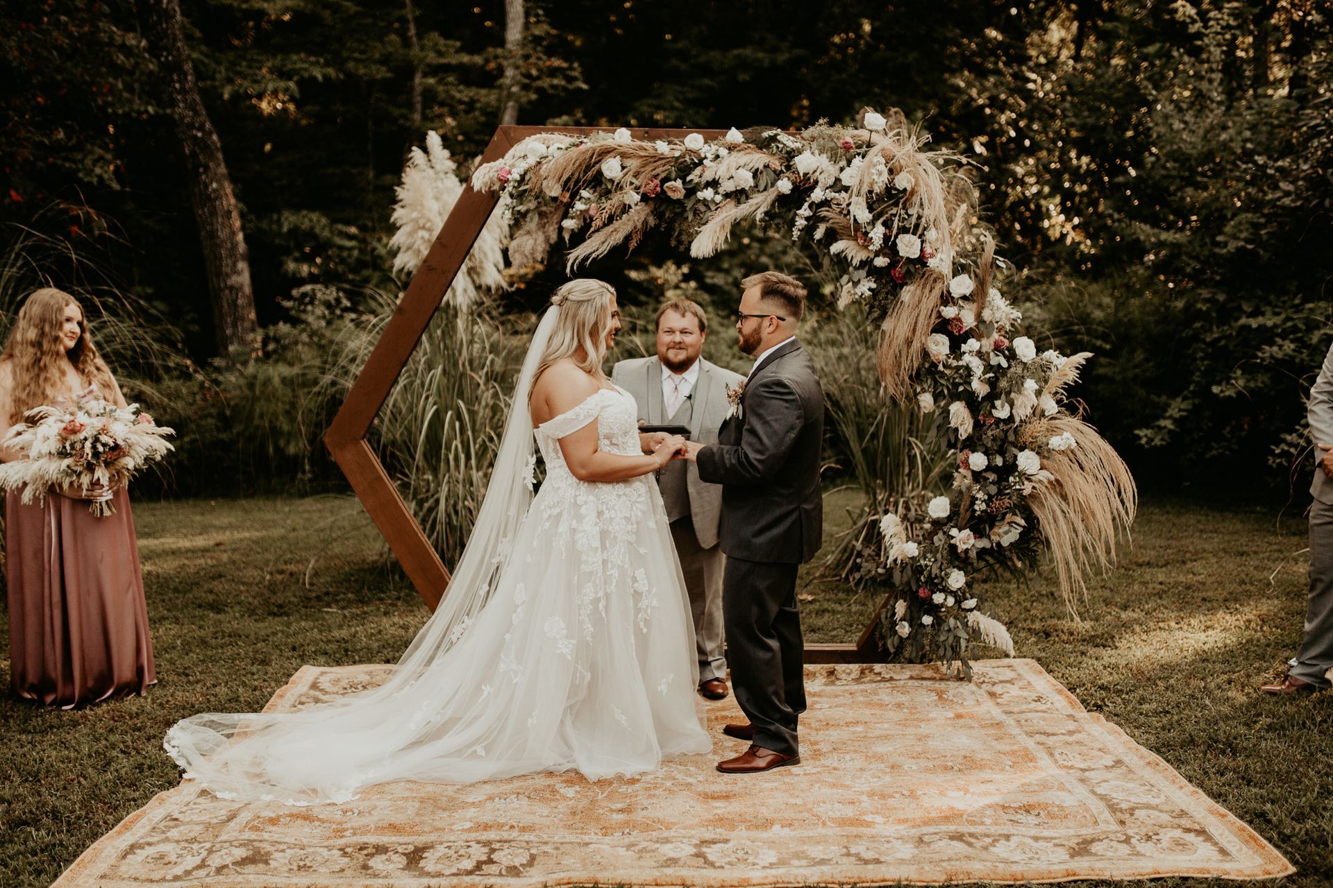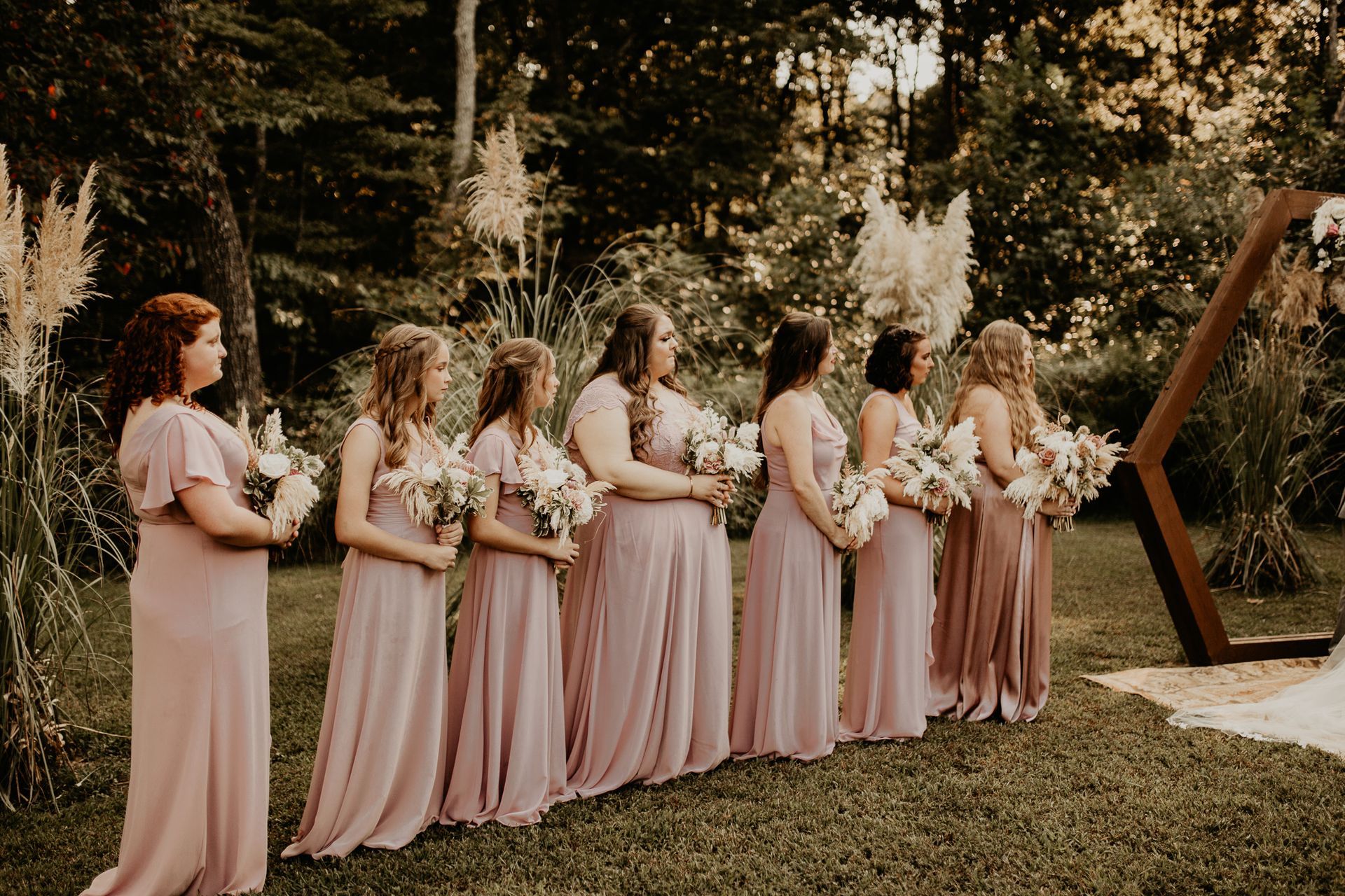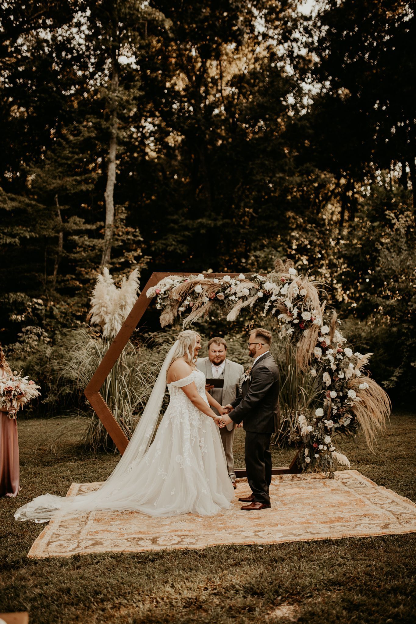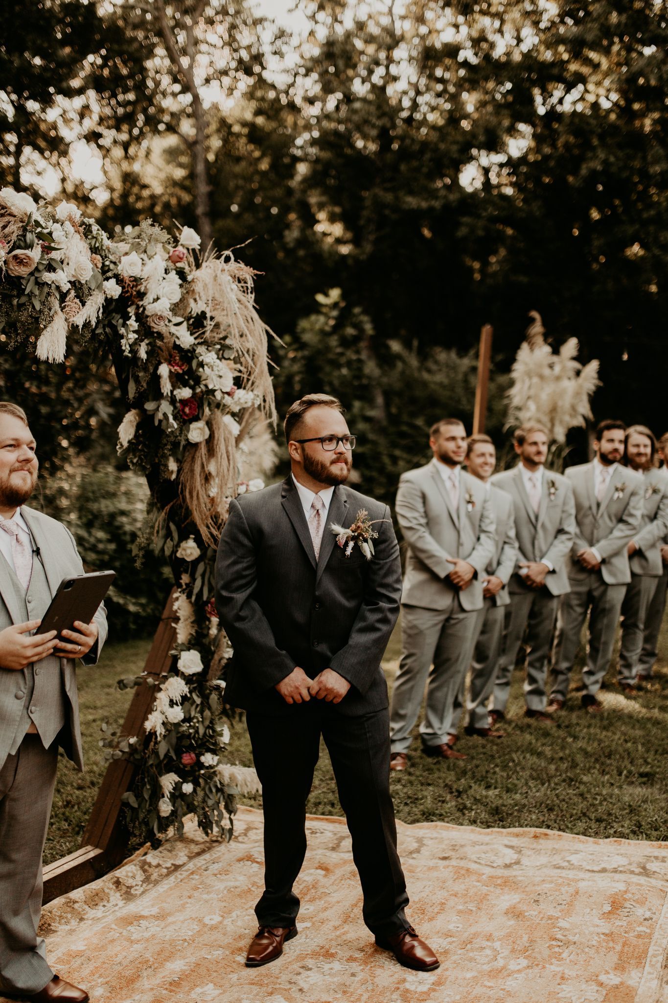 This site is located on the south lawn of the venue and is designed for those brides who want to combine a more relaxed and carefree outdoor atmosphere with their creative and free-spirited style. Guests and wedding party will walk through a set of free-standing doors with macramé hangings to get to this site with permanent bench seating. Various rugs are available allowing the wedding party to walk barefoot down the aisle to stand before a permanent arbor flanked on both sides by natural pampas grass.