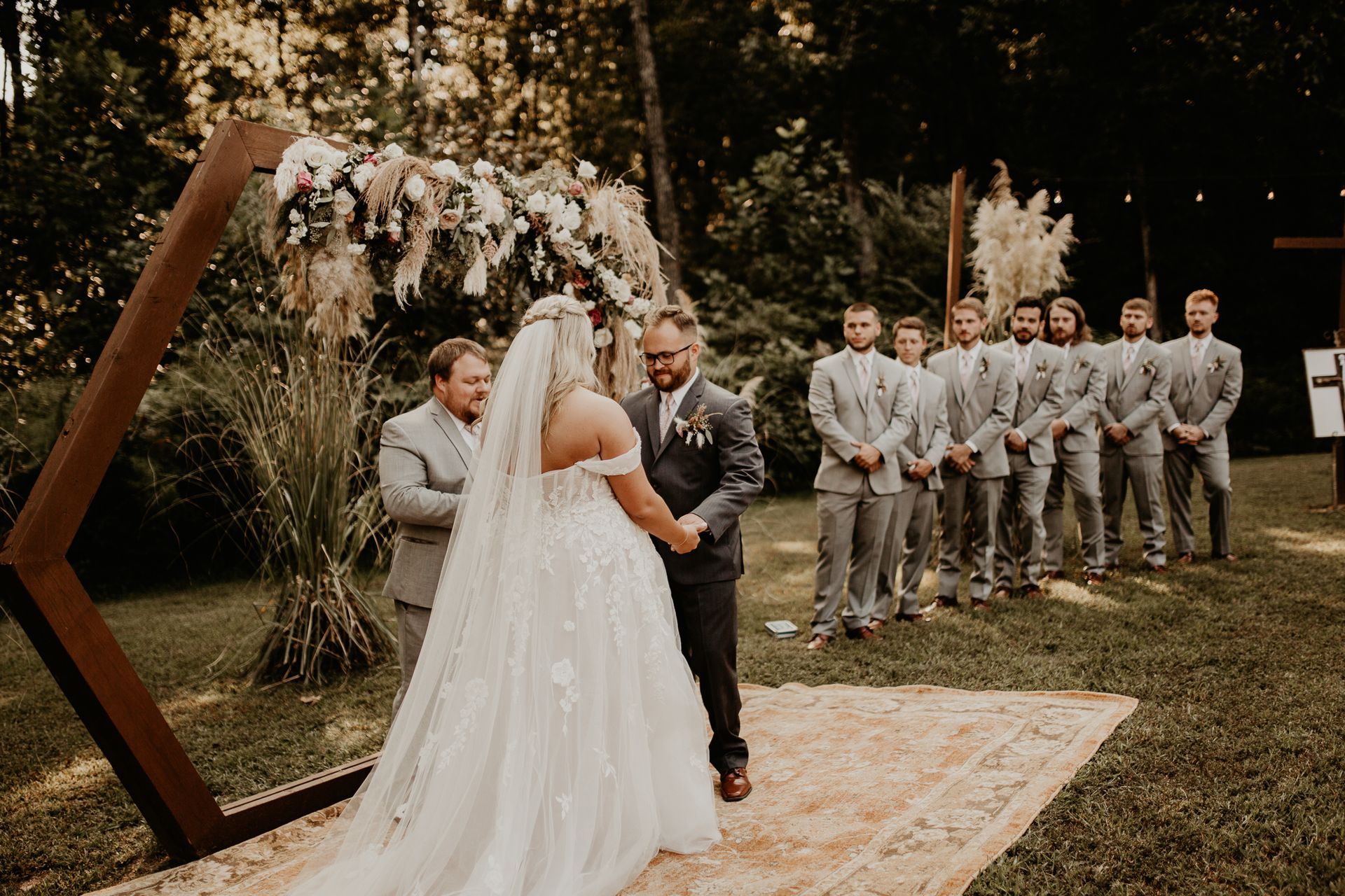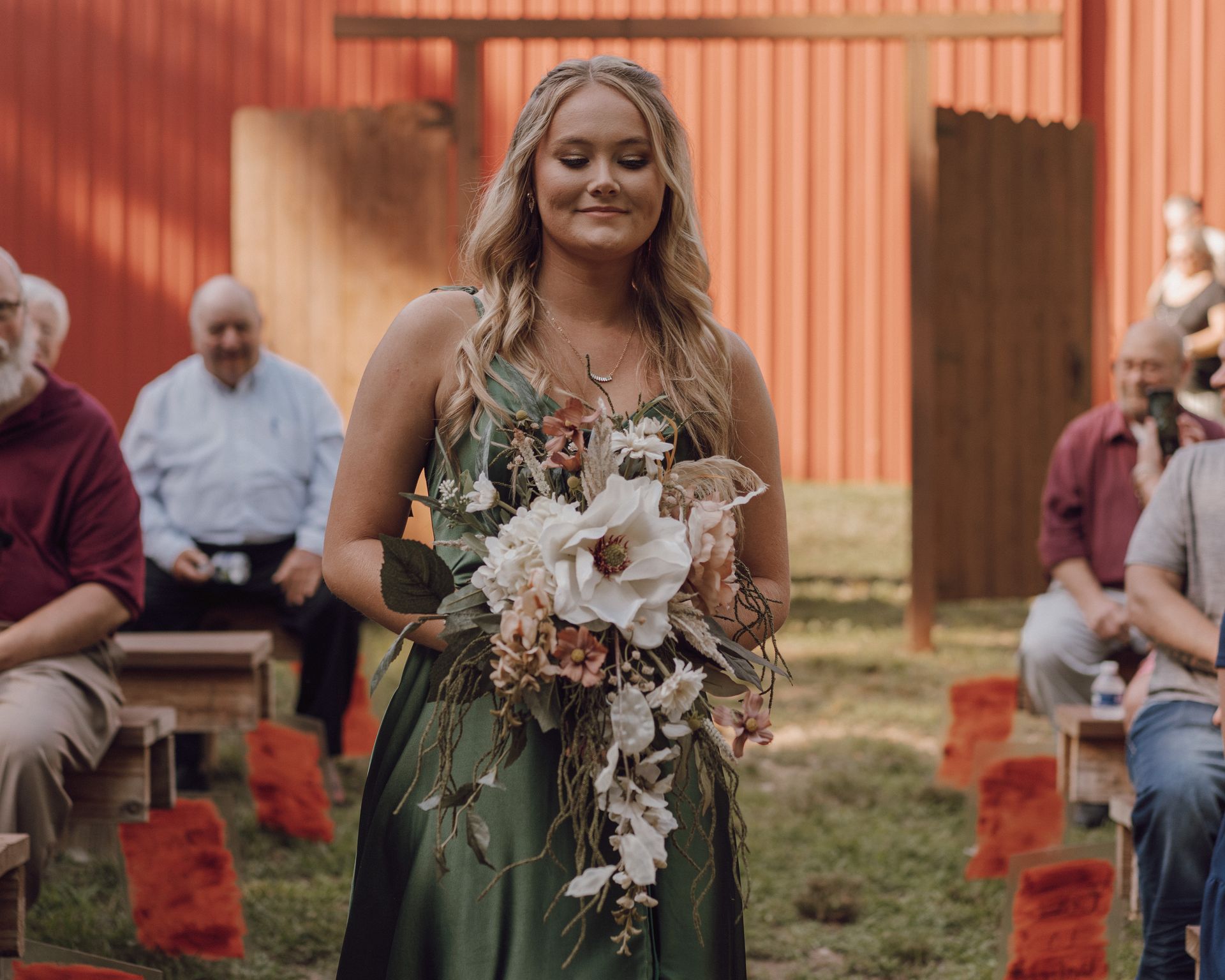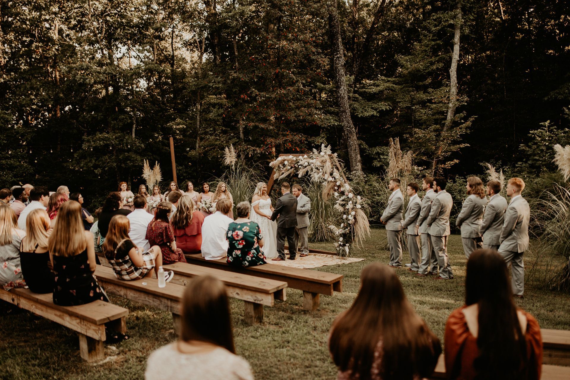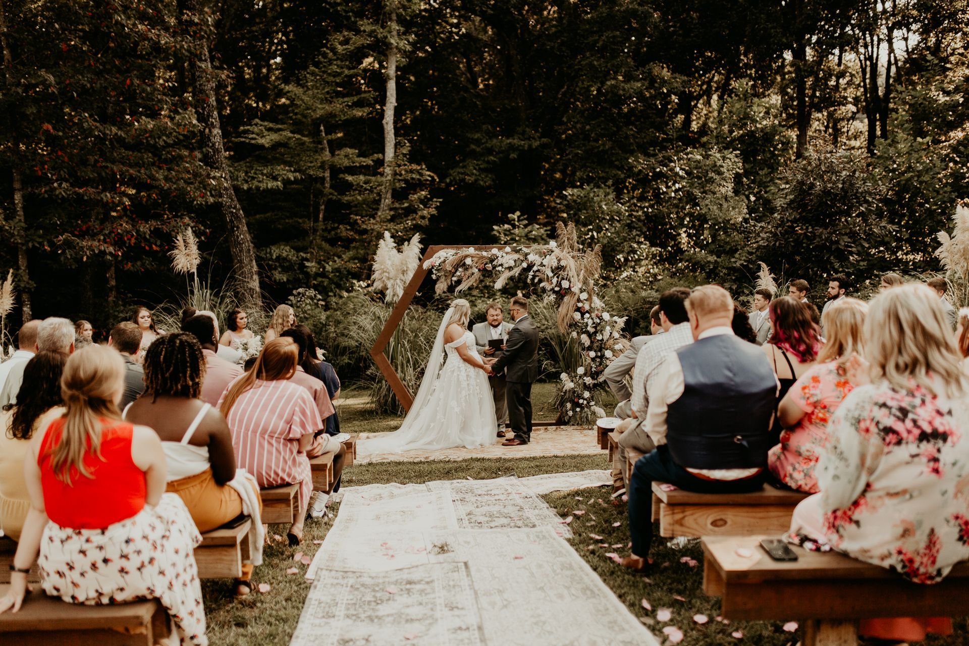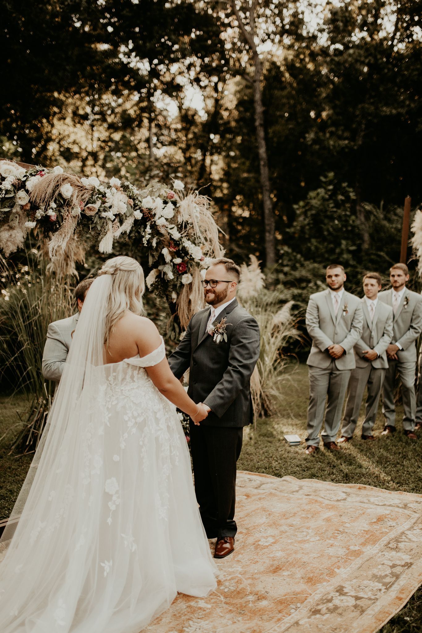 This site is located on the south lawn of the venue and is designed for those brides who want to combine a more relaxed and carefree outdoor atmosphere with their creative and free-spirited style. Guests and wedding party will walk through a set of free-standing doors with macramé hangings to get to this site with permanent bench seating. Various rugs are available allowing the wedding party to walk barefoot down the aisle to stand before a permanent arbor flanked on both sides by natural pampas grass.