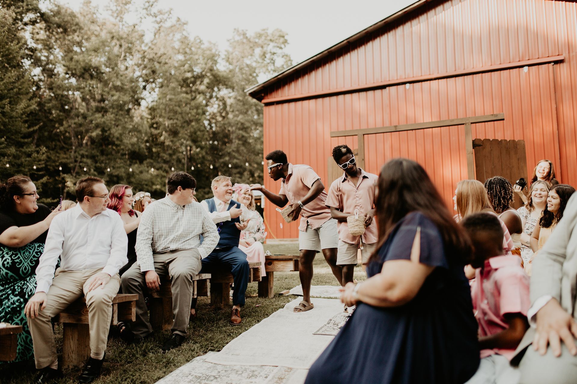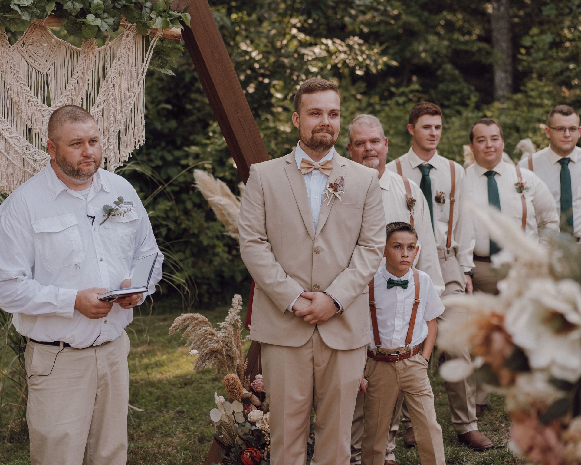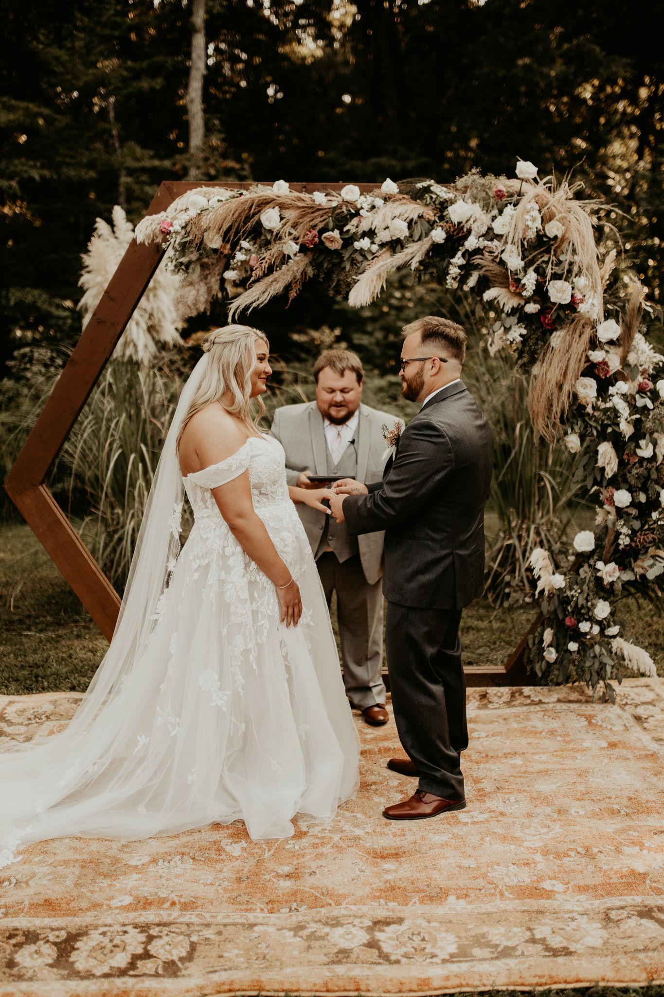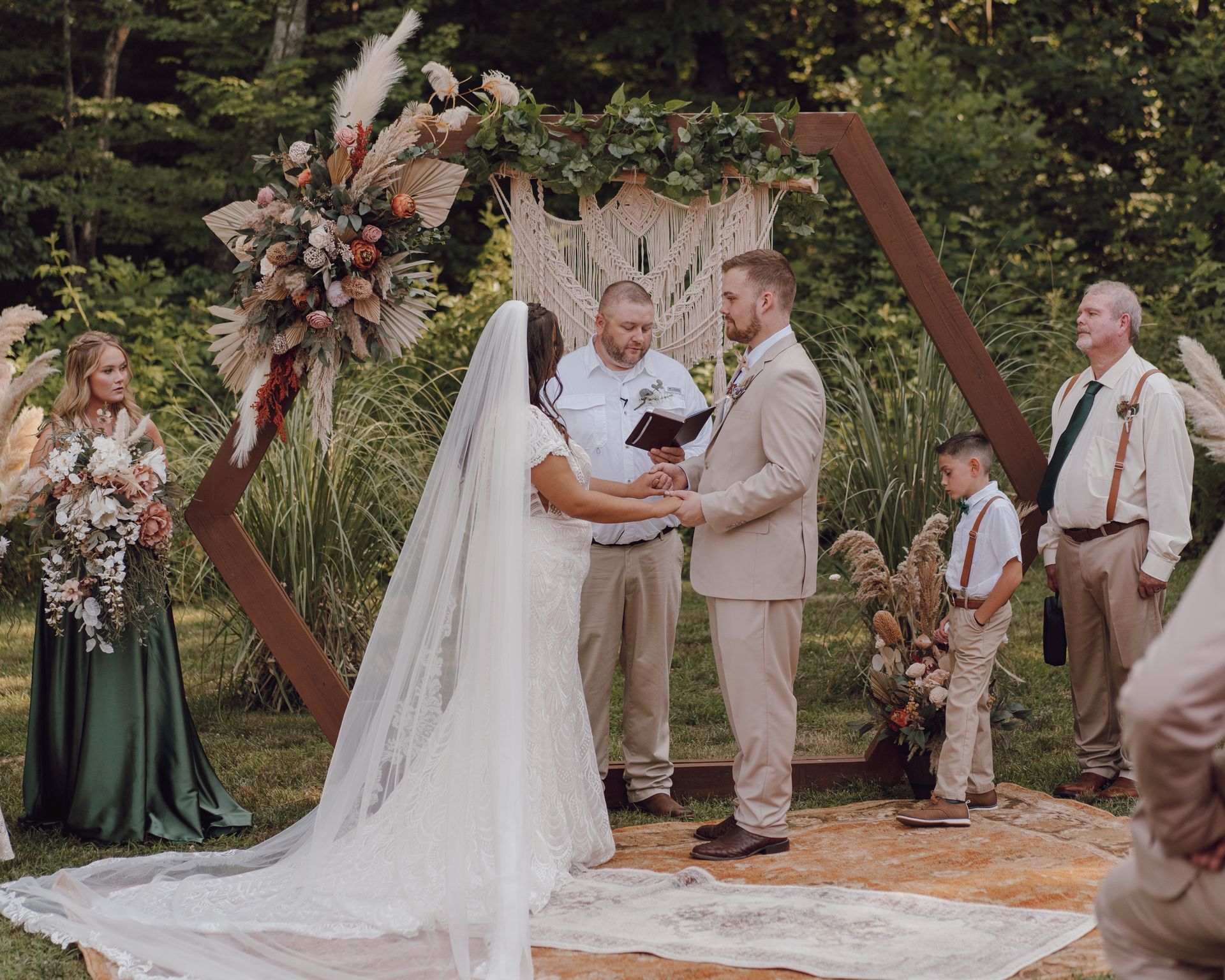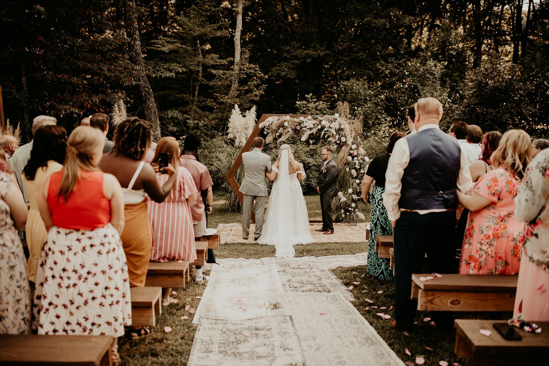 This site is located on the south lawn of the venue and is designed for those brides who want to combine a more relaxed and carefree outdoor atmosphere with their creative and free-spirited style. Guests and wedding party will walk through a set of free-standing doors with macramé hangings to get to this site with permanent bench seating. Various rugs are available allowing the wedding party to walk barefoot down the aisle to stand before a permanent arbor flanked on both sides by natural pampas grass.