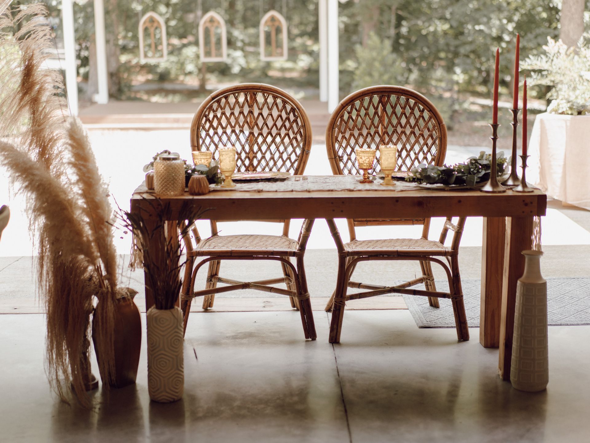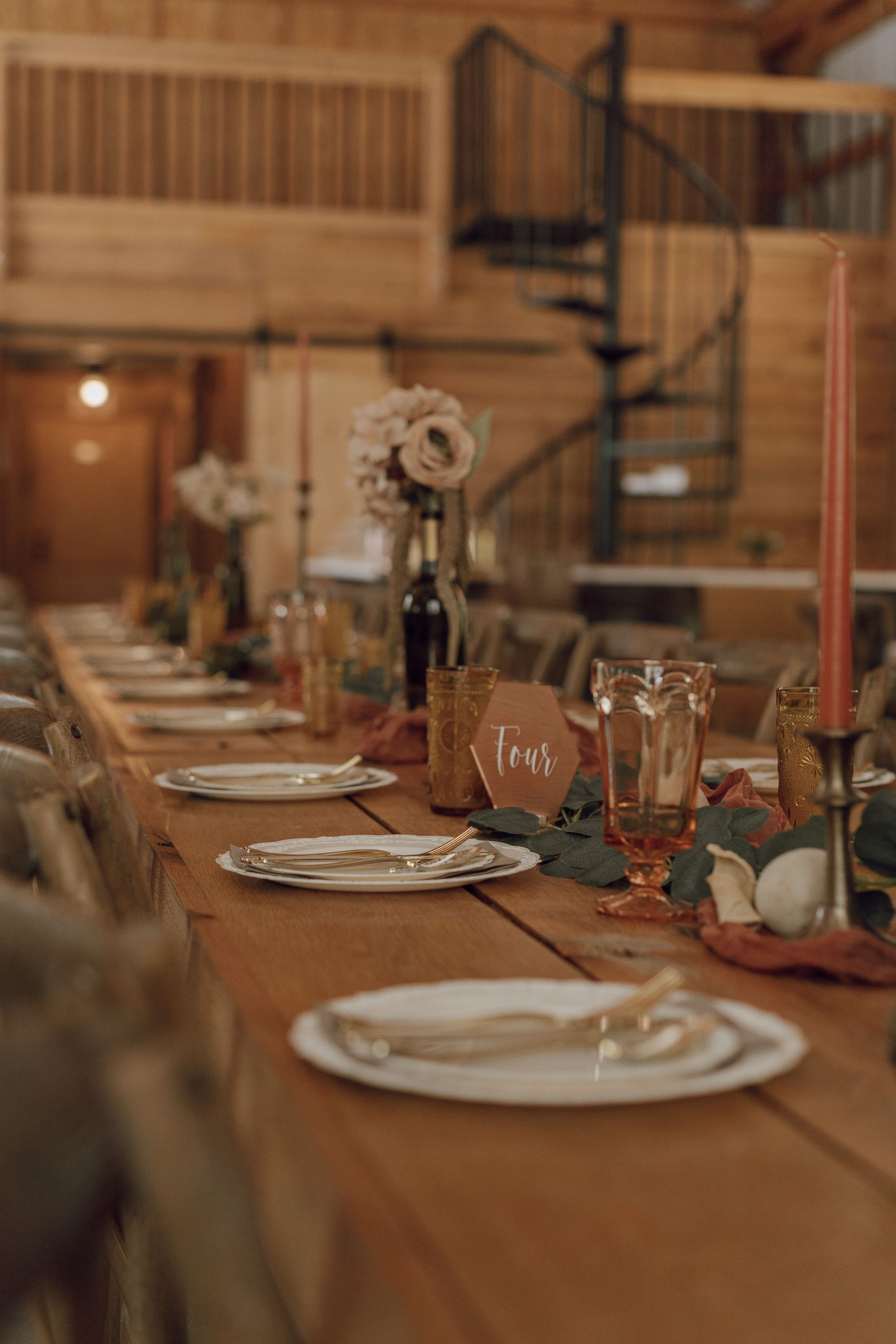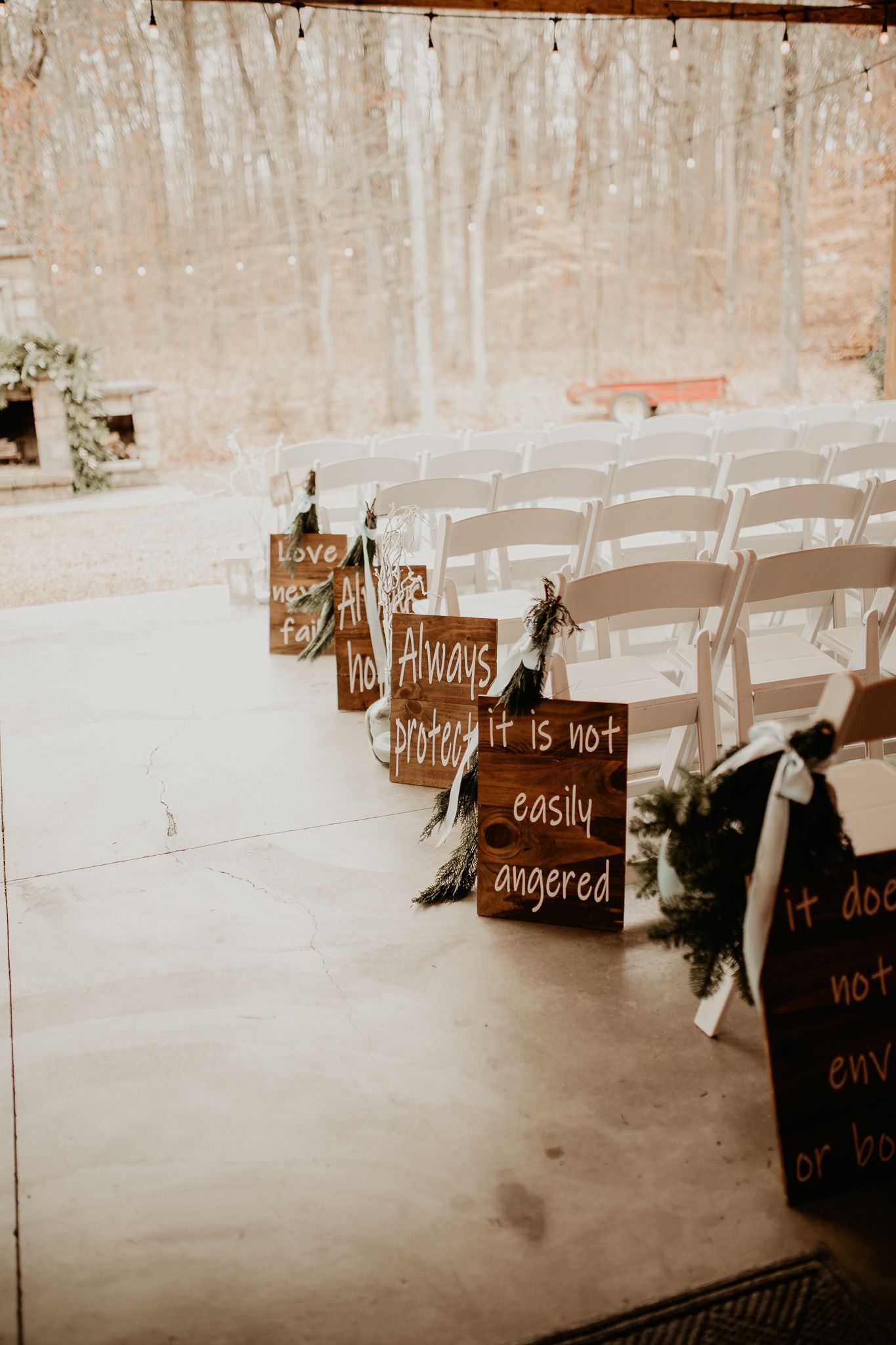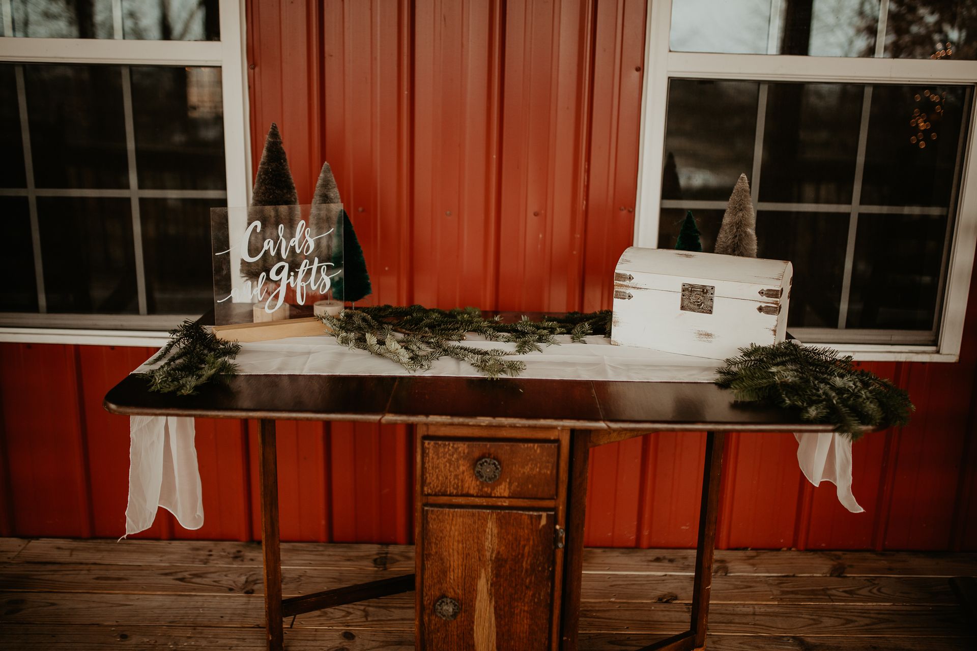 This room features labeled shelves filled with wedding décor items from lanterns and wooden signs to glass vases and runners which may all be used for no additional fee. Along with the decorations are the facility’s cornhole boards and an antique loveseat that may be taken and used anywhere on the property for picture purposes. We simply ask that items removed and used for the wedding are returned at the end of the evening.